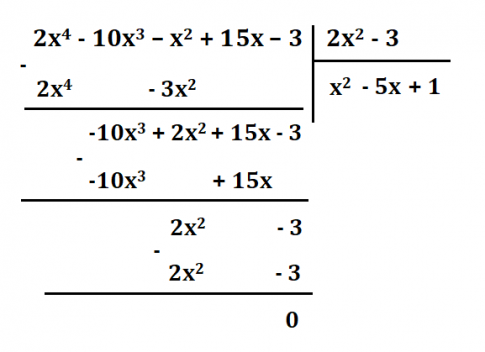 - 10x$^{3}$ - x$^{2}$ + 15x – 3) : (2x$^{2}$ - 3);