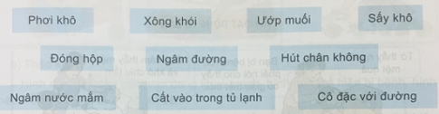 b. Mỗi bạn chọn một cách bảo quản dưới đây phù hợp với một loại thức ăn ở trên: