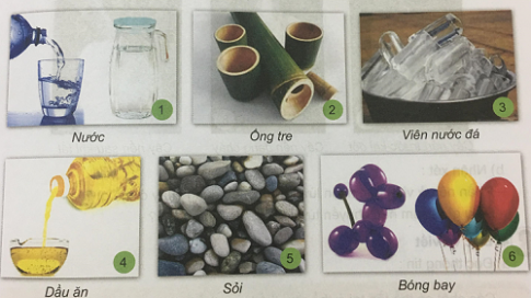 - Các vật hoặc chất trong hình từ 1 đến 5 ở thể gì, có hình dạng như thế nào?