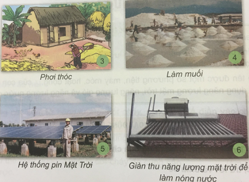- Trong mỗi hình sau đây, con người đã sử dụng năng lượng mặt trời vào những việc gì?