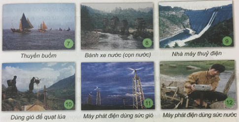 - Năng lượng nước chảy: chở hàng xuối dòng, đưa nước lên vùng cao, làm quay tuabin phát điện...