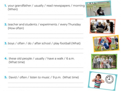 Question 2: Look at the pictures. Ask and answer questions using the given words / phrases.
