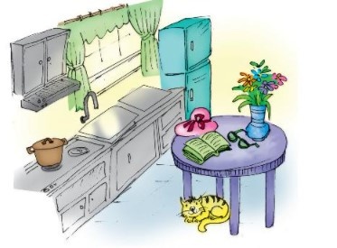 Mi: I think it's........ (1).......... the dining table ...........(2)........the kitchen.