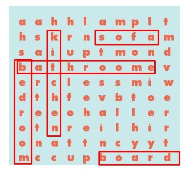Question 2: Find eight words related to the topic "My house" in the word search puzzle. The words can run up, down, across or diagonally.
