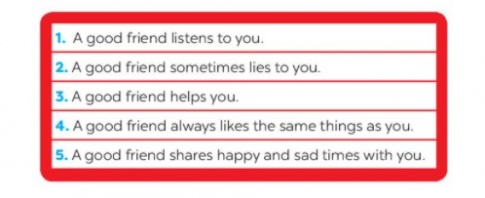 A good friend is reliable. They never lie to you. They always listen to you. And they help you. They're always there when you need them, in good or bad times. And A good friend doesn't necessarily likes the same things as you
