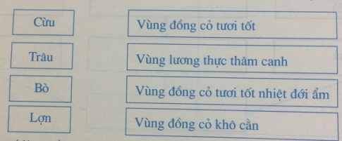 Dựa vào các kiến thức đã học, em hãy ghép tên các vật nuôi vào các vùng chăn nuôi tương ứng: