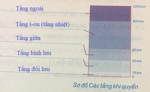 Dựa vào nội dung SGK và quan sát hình 11.1 ban chuẩn hoặc hình 13.2 ban nâng cao, em hãy điền tên các tầng khí quyển vào sơ đồ bên, để mô tả cấu trúc của khí quyển trheo chiều thẳng đứng.