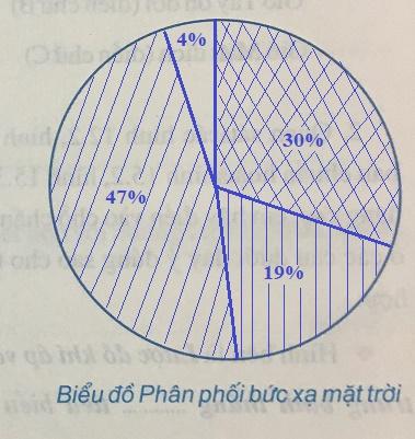 Quan sát kĩ hình 11.2 ban chuẩn hoặc hình 14.1 ban nâng cao, em hãy điền vào chỗ chấm (...) tỉ lệ các thành phần lượng bức xạ Mặt Trời chiếu đến bề mặt Trái Đất và tiến hành vẽ biểu đồ hình tròn thể hiện sự phân phối đó.