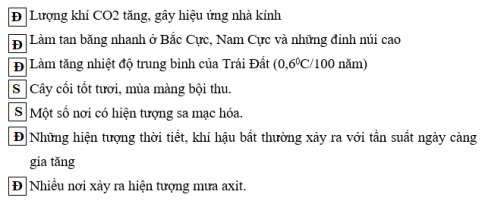 - Hãy điền chữ Đ vào ô trống ý em cho là đúng, chữ S vào ô sai: