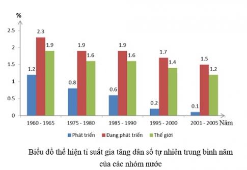 - Từ những năm 1960 đến năm 1990 ở các nước phát triển, tỉ suất gia tăng dân số là từ ...... đến .....%. Đặc biệt là từ năm 1995 đến nay, tỉ suất gia tăng dân số tự nhiên giảm xuống còn từ ........ đến ...........%.