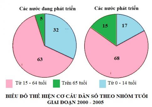 - Vẽ biểu đồ hình tròn thể hiện cơ cấu dân số theo nhóm tuổi giai đoạn 2000 – 2005.