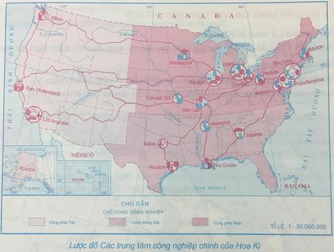 Giải TBĐ địa 11 bài 6: Hoa Kì - Tiết 3 thực hành tìm hiểu sự phân hóa lãnh thổ sản xuất của Hoa Kì