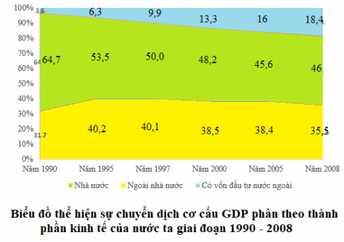 - Nhận xét sự chuyển dịch cơ cấu GDP phân theo thành phần kinh tế từ biểu đồ đã vẽ