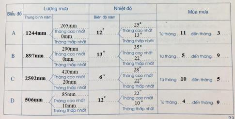 Dựa vào biểu đồ nhiệt độ và lượng mưa trong bài thực hành, em hãy hoàn thành tiếp bảng sau: