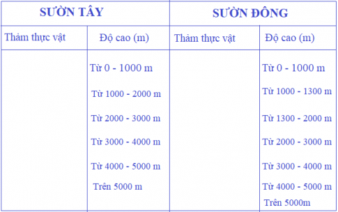 Dựa vào sơ đồ phân hóa của thảm thực vật ở sườn Đông và sườn Tây dãy Anđét trong SGK, em hãy điền nội dung phù hợp vào bảng sau: