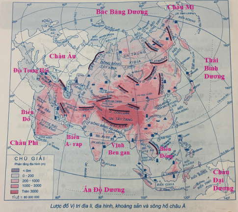 - Tên các châu lục, các đại dương tiếp giáp với châu Á