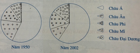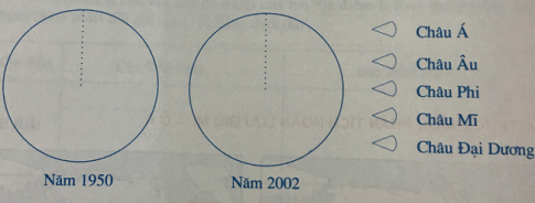 - Vẽ biểu đồ biểu thị dân số các châu lục dựa vào tỉ lệ đã tính: