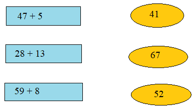Mỗi số 41; 52; 67 là kết quả của phép tính nào?