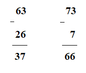 a. 53 - 37 b. 63 - 6 c. 73 - 9