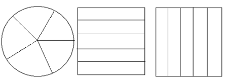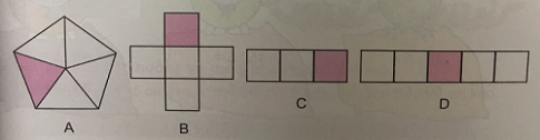 a. Các hình vẽ dưới đây đã được chia thành 5 phần bằng nhau. Tô màu vào một phần của mỗi hình như sau: