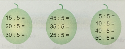 3. Em hãy dựa vào bảng nhân 5 để tìm kết quả các phép chia dưới đây rồi viết vào vở