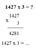 - 3 nhân 1 bằng 3, thêm 1 bằng 4, viết 4