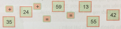Em đến góc học tập lấy các thẻ số và thẻ dấu như hình dưới đây. Hãy ghép các thẻ thành phép tính đúng