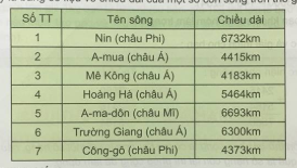 Dưới đây là bảng số liệu về chiều dài của một số con sông trên thế giới: