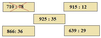Những tấm thẻ viết phép chia có thương lớn hơn 20 là: