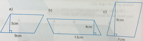 - Hình a: Diện tích hình bình hành là: S = 9 x 5 = 45 (