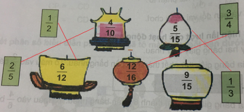 và viết vào vở. Giải thích cho người lớn nghe tại sao các phân số em tìm được lại bằng phân số ![]()