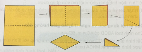 Gấp và cắt tờ giấy (theo hình vẽ) để tạo thành hình thoi.