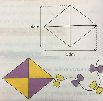 Em hãy giúp bạn My tính xem bạn ấy cần bao nhiêu đề xi mét vuông giấy để có thể gián được con diều.