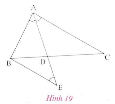 Qua đỉnh B vẽ đường thẳng song song với AC cắt AD tại E (h.19).