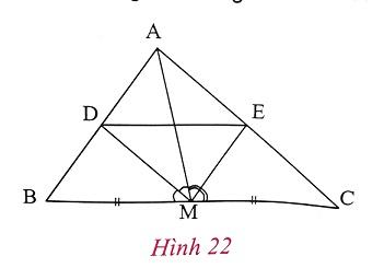 Cho tam giác ABC với đường trung tuyến AM. Tia phân giác của góc AMB cắt cạnh AB ở D, tia phân giác của góc AMC cắt cạnh AC ở E (h.22). Chứng minh rằng DE // BC.