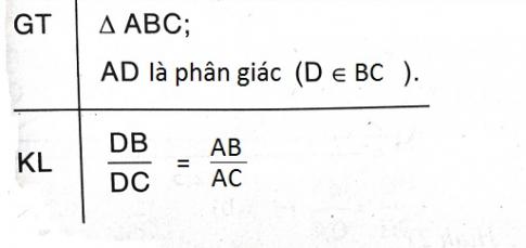 ABC, ta có AD là phân giác của $\widehat{BAC}$, suy ra $\frac{BD}{DC}$ = $\frac{AB}{AC}$.