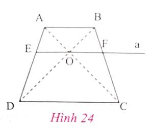 Cho hình thang ABCD (AB // CD). Hai đường chéo AC và BD cắt nhau tại O. Đường thẳng a qua O và song song với đáy của hình thang cắt các cạnh bên AD, BC theo thứ tự tại E và F (h.24).