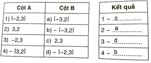 Ghép một số ở cột A với một số ở cột B để được một cặp số bằng nhau, rồi điền vào bảng kết quả: