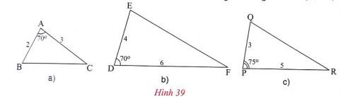 1. a) Cho hai tam giác ABC và DEF có các kích thước như trong hình 37.