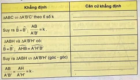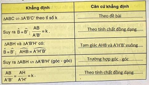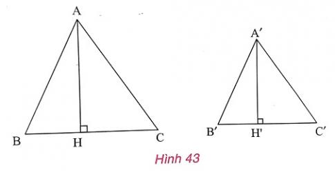 2.a) Cho ABC và A'B'C' đồng dạng có đường cao tương ứng là AH và A'H' như hình 43. Gọi tỉ số đồng dạng của hai tam giác là k. Chứng minh: