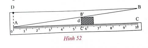 Hình 52 dưới đây mô tả dụng cụ đo bề dày của một số loại sản phẩm. Dụng cụ này gồm thước AC được chia đến 1mm và gắn với một bản kim loại hình tam giác ABD, khoảng cách BC = 10mm.