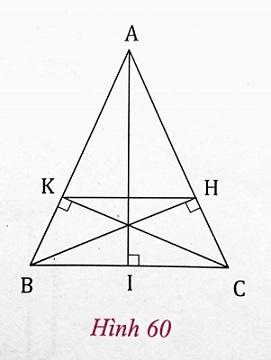 Cho tam giác cân ABC (AB = AC), vẽ các đường cao BH, CK (h,60). Chứng minh: