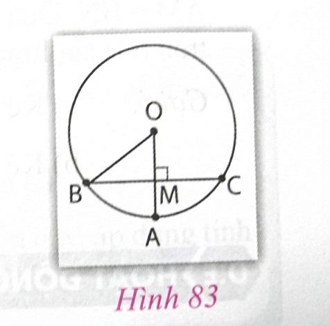 c) Cho hình 83. Biết bán kính OA của (O) vuông góc với dây BC tại M, BC = 8cm, OM = 3cm. Tính bán kính (O).