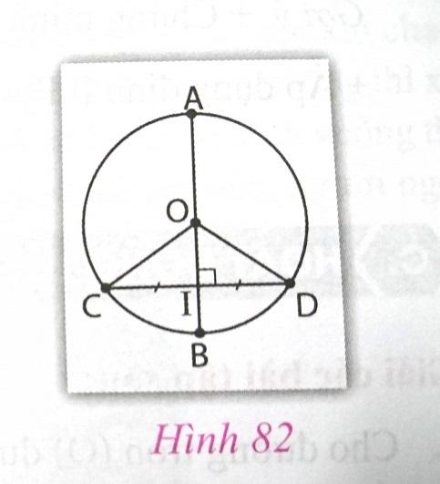 Cho đường tròn tâm O và đường kính AB vuông góc với dây CD tại I. Chứng minh I là trung điểm của dây CD (h.82).