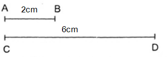 a) Đôạn thẳng AB dài là 2cm. Đoạn thẳng CD dài là 6cm