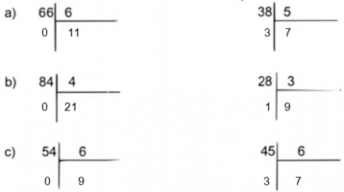 | Số bị chia | 66 | 38 | 84 | 28 | 54 | 45 |