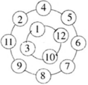 Vì tổng 4 số ở vòng tròn trong bằng nửa tổng 8 số ở vòng tròn ngoài nên tổng 4 số vòng trong bằng