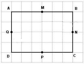 Xác định trung điểm M của đoạn thẳng AB, trung điểm N của đoạn thẳng BC, trung điểm P của đoạn thẳng DC, trung điểm Q của đoạn thẳng AD trong hình bên (bằng cách tô đậm rồi ghi tên mỗi điểm đó).