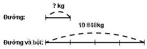 Người ta đã chuẩn bị 10 848kg đường kính và bột để làm bánh, số đó là đường kính. Hỏi mỗi loại có bao nhiêu ki-lô-gam ?