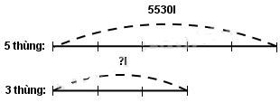 Có 5530l nước chứa đều trong 5 thùng. Hỏi 3 thùng như thế chứa bao nhiêu lít nước ?